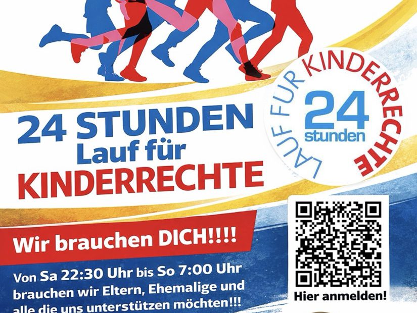 Für unseren 24-Stunden-Lauf für Kinderrechte suchen wir engagierte Unterstützung: Eltern, Ehemalige und alle, die sich unserer Schulgemeinschaft verbunden fühlen! Besonders für die Nachtzeit von 22:30 bis 7:30 Uhr brauchen wir viele motivierte Läuferinnen und Läufer, die gemeinsam ein starkes Zeichen… Mach mit – wir brauchen dich!