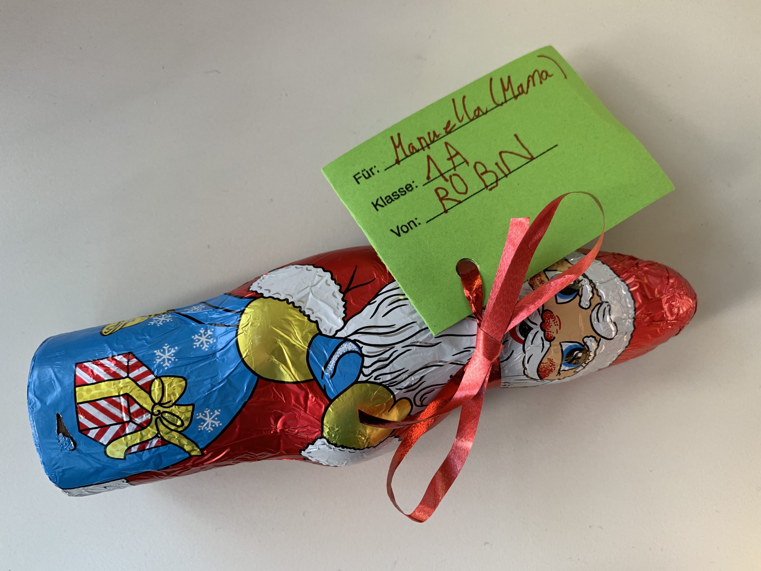 Bei unserer Nikolausaktion konnte ein Nikolaus leider nicht zugeordnet werden. Er wurde vermutlich versendet von „Robin 1A“ und sollte an seine Mama „Manuela“ gehen. Wer kann uns helfen, so dass der Nikolaus noch seinen Weg zur richtigen Person findet?!?