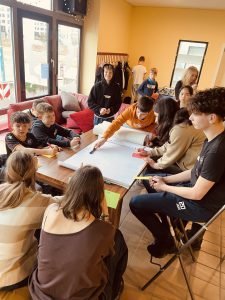 Der erste Tag begann mit gruppendynamischen Spielen, die von Alexander Lauber geleitet wurden. Durch verschiedene Übungen wurde das Miteinander gefördert und eine vertrauensvolle Atmosphäre geschaffen. Anschließend arbeiteten die Teilnehmenden an verschiedenen SMV-relevanten Themen, die zuvor in einer Sitzung gesammelt wurden. Dabei wurden kreative Lösungsansätze entwickelt und neue Projekte angestoßen. Unter anderem wurde auch über anstehende Events gesprochen, bei denen auch Unicef mit einbezogen wird. Zur Unterstützung kam hierfür Frau Grass, Leiterin von Unicef Karlsruhe, mit zwei Kolleg*innen vorbei, um die Schüler*innen zu informieren. Ein herzliches Dankeschön an dieser Stelle für ihr ehrenamtliches Engagement.
