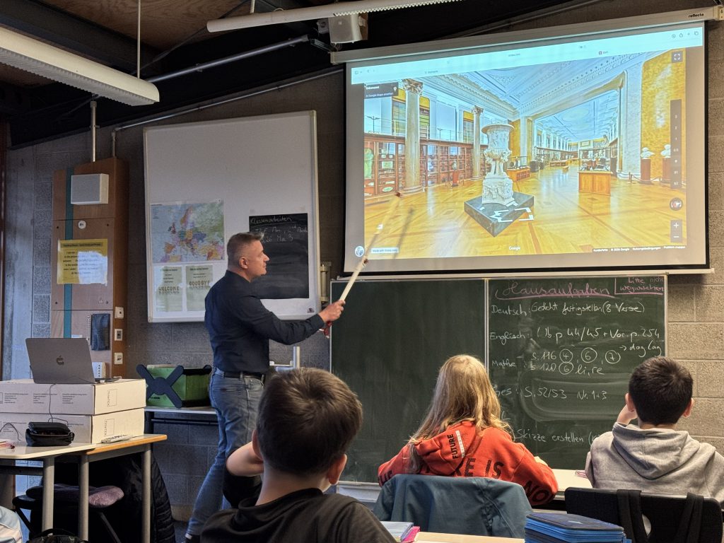 In den Geschichtsstunden vor den Faschingsferien durften die beiden 6. Klassen einen besonderen Gast begrüßen: Herr Neumeister nahm die beiden Lerngruppen mit auf eine spannende digitale Führung durch das berühmte British Museum in London – ermöglicht durch einen virtuellen Rundgang mit Google Street View.